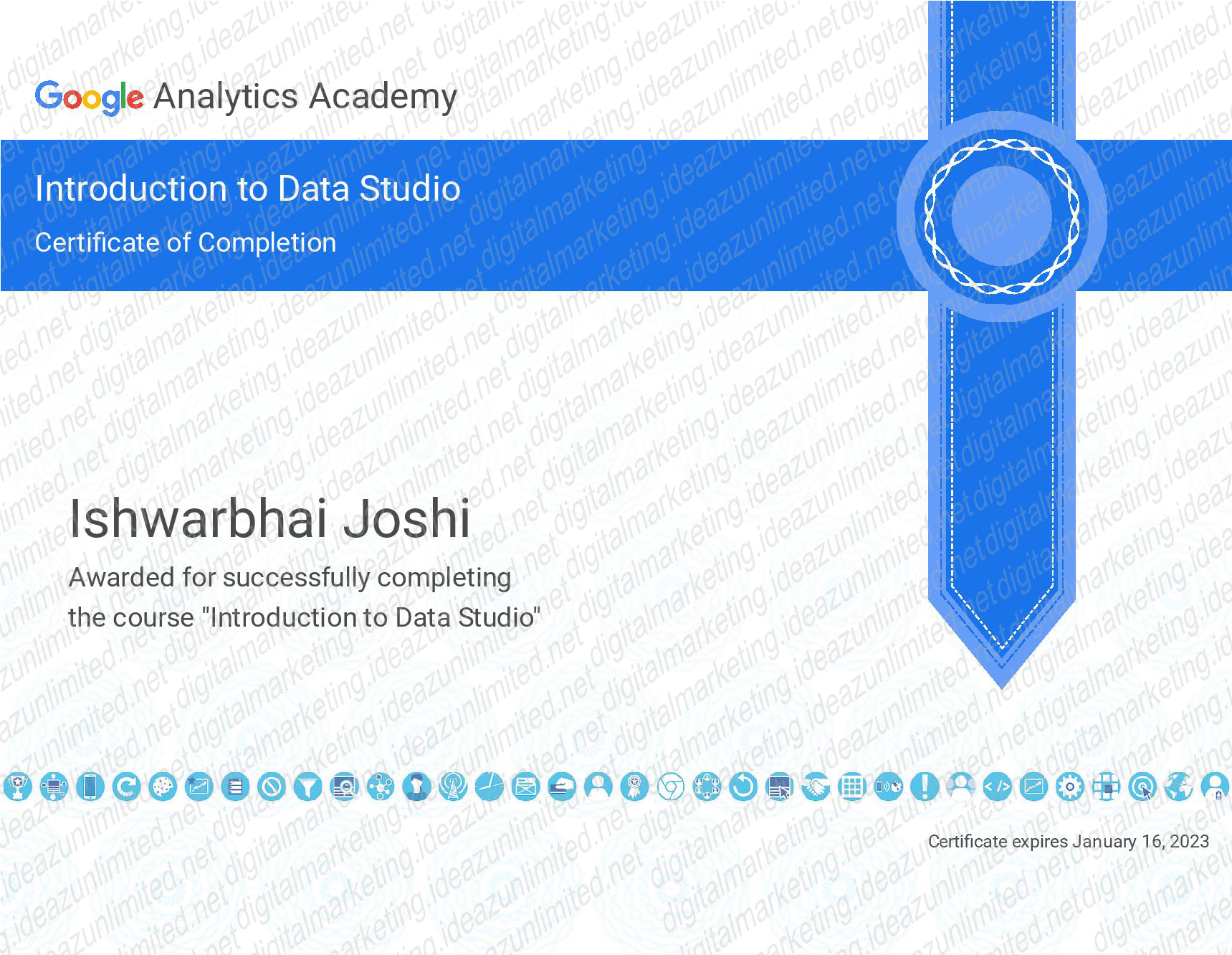 Google Analytics certificates of Dr.Ishwarbhai Joshi